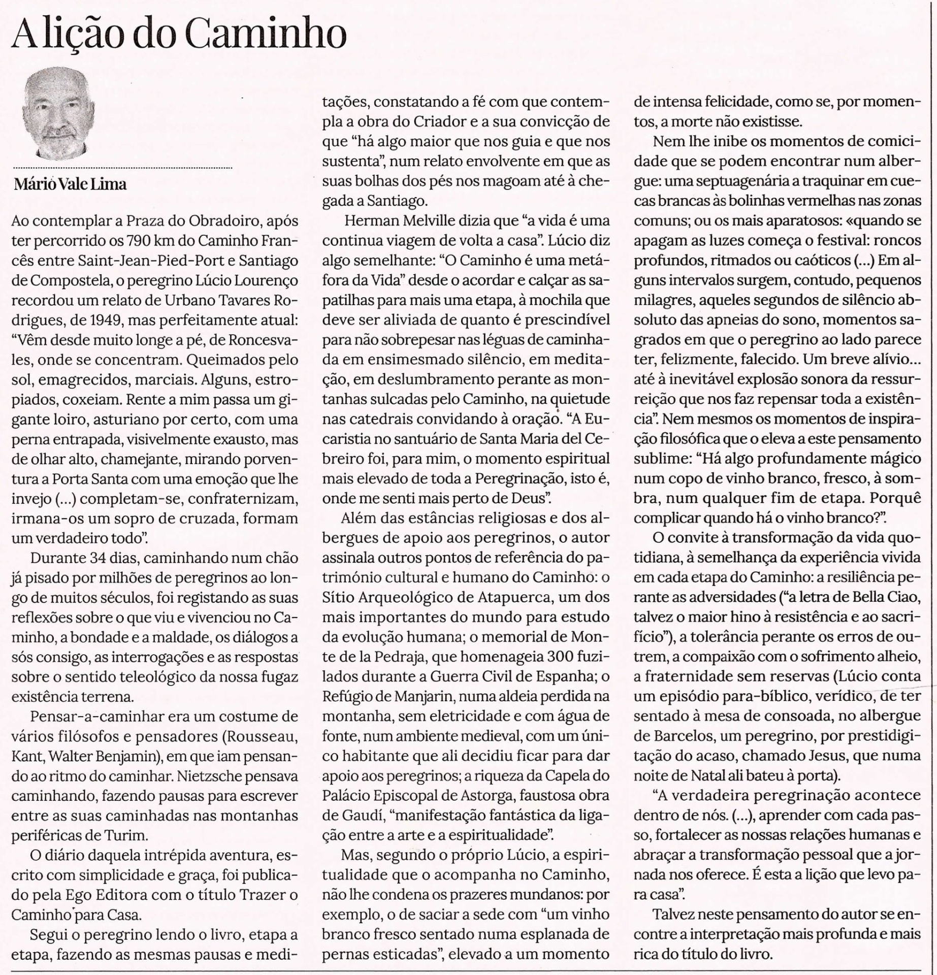 Herman Melville dizia que “a vida é uma contínua viagem de volta a casa”. Lúcio diz algo semelhante: “O Caminho é uma metáfora da Vida” desde o acordar e calçar as sapatilhas para mais uma etapa, a mochila que deve ser aliviada de quanto é prescindível para não sobrepesar nas léguas de caminhada em ensimesmado silêncio, em meditação, em deslumbramento perante as montanhas sulcadas pelo Caminho, na quietude nas catedrais convidando à oração. “A Eucaristia no santuário de Santa Maria del Cebreiro foi, para mim, o momento espiritual mais elevado de toda a Peregrinação, isto é, o sentir-me senti perto de Deus”.